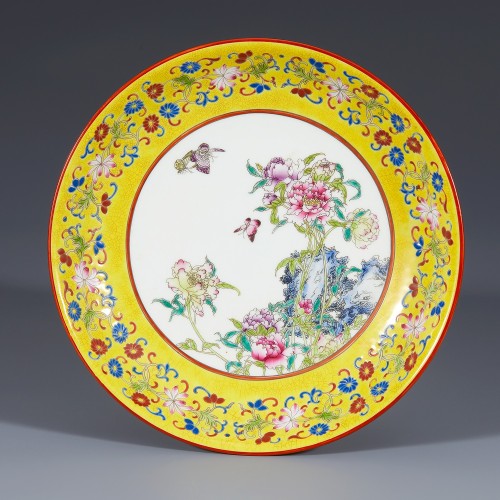 190 황지 분채 모란문 반 청대 옹정 | 4.2×21.4×12.5 cm