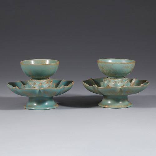 50 정화5년청량사어제 연화형 잔탁 북송 여요 | 전체 높이 10.1 cm, 잔 4×8.5×3.5 cm, 잔탁 6.3×15×7.8 cm