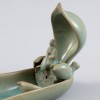 연꽃잎을 돛단배처럼 형상화한 향꽂이입니다. 연꽃잎의 끝부분에는 연밥이 있고 그 위에 작은 인물상이 앉아 있어 마치 물 위의 배 모습을 연상시킵니다. 연밥 중앙에는 향을 꽂을 수 있도록 구멍이 마련되어 있습니다. 연꽃은 불교에서 청정과 해탈을 상징하며, 꽃과 열매가 동시에 맺히는 특징 때문에 생명력과 풍요를 의미합니다. 연꽃과 향을 피우는 행위, 스님을 닮은 작은 인물상은 불교적 세계관을 보여줍니다.