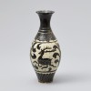구연은 밖으로 외반한 나팔형이며, 구순은 꽃잎처럼 변형을 주었습니다. 잘록하게 내려오는 목 아래로 배가 둥글고 긴 몸통을 이룹니다. 태토 위에 백색 유약을 시유한 뒤, 흑색 안료로 채색하여 문양을 그리는 흑화 기법을 사용하였습니다. 소성 과정에서 가마 환경의 영향으로 요변 현상이 나타나 표면에 자연스러운 요철이 보입니다.