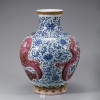 청나라 건륭제(1711~1799) 때 제작된 것으로 동체 전면에는 청화로 보상화(寶相華)와 넝쿨문양을 생동감 있게 배치하였으며, 용무늬를 양각하고 붉게 채색한 청화연지홍채 용무늬 항아리입니다.
