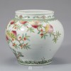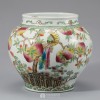 A famille-rose jar with a compressed globular body and swelling shoulder.