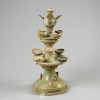 한나라 시기(BC206-AD220) 제작된 것으로 녹색 유약을 발라 구워낸 원형의 녹유삼층등잔입니다.