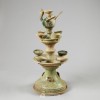 最上面是雕刻精巧的凤凰的背上放着一个灯盏,下面两个圆形上各放四个小圆形的灯盏,共由九个灯盏组成。可以分为凤凰形状的灯盏和下面四个灯盏共同构成的上端、与竹子形状相似的柱子上贴着四个灯盏的中端、有底座的下端三等分,可见绿色的釉料较多,状态良好。上端有凤凰形状,凤凰的毛表现等制作得非常细致精巧,据推测是皇帝或贵族的古墓中出土的陪葬品。