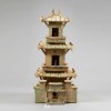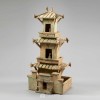 The pavilion is similar to the green oil pavilion collected by the Osaka Municipal Museum of Oriental Ceramics. Each floor has a rectangular door open, and there are figures of people looking out of the door. The outside of the building is surrounded by walls, and there is a gate with a tiled roof on the front of the first floor. The amount of green glaze remaining indicates that the present work is in good condition.