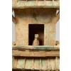 오사카 시립 동양 도자 박물관에 소장되어 있는 녹유 누각과 비슷한 형태의 이 누각은 각 층마다 세로가 긴 직사각형의 문이 뚫려 있고, 안쪽에 문 밖을 바라보고 있는 인물상이 놓여 있습니다. 건물 바깥쪽에는 사방으로 담장이 둘러싸여 있으며, 1층 앞쪽에는 기와 지붕의 대문이 있습니다. 녹색의 유약이 비교적 많이 남아 있어 상태가 양호함을 알 수 있습니다.