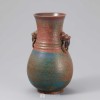 구연부와 굽이 넓고 몸통이 둥글며 목의 양쪽에 상상의 동물인 포수(鋪首)가 둥근 고리와 함께 붙어 있는 북송 균요 포수쌍이병(鋪首双耳甁)입니다.
