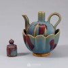 뚜껑이 포함된 작은 구연부와 직선으로 곧게 뻗은 짧은 목, 팔각형의 둥근 몸체를 가진 북송 균요(均窯) 주자와 연꽃 모양의 온완입니다.