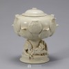 该香炉制造于北宋定窑,大口沿部和底部,其上有像是把花倒放形状的盖。