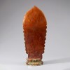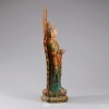 The natural stripes that appear after mixing various soils are called Lianliwen. This Buddha figurine is adorned with colorful Lianliwen. The Buddha stands on a lotus platform, and the divine light and the headlight are combined into a huge medallion decorated with a scroll band. One hand holds a medicine box, and the other hand neatly spreads five fingers, and the palm hangs outwards. Since it holds the medicine box, it is clear that the present work depicts the pharmacist Tathagata who can cure all diseases, eliminate all kinds of troubles, and even treat unknown diseases.