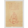 화면은 황색의 얇은 종이 위에 붉은 주사(朱沙) 선묘(線描)로 나한을 묘사하고 있습니다. 상단에는 불경 일부가 정갈하게 적혀 있습니다. 이 작품은 상하구성을 유지하면서도 나한의 자세, 표정, 그리고 경문의 조합을 달리하며 하나하나가 독립적인 불화이기도 합니다.