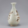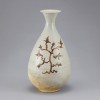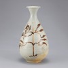 该瓶以铁画技法饰抽象化的花草纹。撇口,细颈,圆腹下垂。除底足外,通体施灰白色釉,并留有烧制底座的痕迹。据推测,该瓶可能烧制与17世纪,除了底部的氧化部分,其余部分釉色相对均匀。