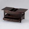 The structure includes a covered top compartment for the inkstone, an open middle section, and a lower drawer, achieving both structural balance and practicality.