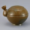 Notably, unlike the spout structure commonly seen in turtle-shaped bottles, this example has a tall, upright spout resembling that of a ritual ewer, which draws particular attention. The spout rises straight up from the top of the vessel, allowing for easy pouring and emphasizing both functionality and sculptural beauty. This distinctive spout and the lotus decoration suggest that this bottle may have been used as a Buddhist ritual object.