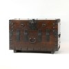 This bandaji (half-opening chest) from Gyeongsang Province exudes a dignified presence through its dark-toned wood and large iron fittings. The front panel opens halfway, and the closely joined wooden boards display a stable structure with visible wood grain.