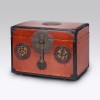 正面圆形边框内饰有“福”与“寿”字,更添吉祥寓意。锁具部分造型似花卉,增添了装饰美感。