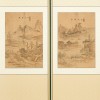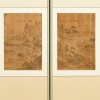 앞 폭에는 중국 후난성(湖南省) 소수(瀟水)와 상강(湘江) 일대 풍경을 주제로 한 여덟 가지 경치인 소상팔경(瀟湘八景)을 담았습니다. 밤비 내리는 모습, 안개 낀 절, 물가의 돛단배 등 자연의 변화 속 정취와 전원적 이상이 드러납니다. 오른쪽부터 두번째 폭이 동정추월(洞庭秋月), 세번째 폭이 소상야우(瀟湘夜雨), 네번째 폭이 연사모종(煙寺暮鐘), 다섯번째 폭이 산시청람(山市晴嵐), 여섯번째 폭이 어촌낙조(漁村落照), 일곱번째 폭이 원포귀범(遠浦歸帆), 여덟번째 폭이 평사낙안(平沙落雁), 아홉번째 폭이 강천모설(江天暮雪)입니다.