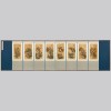 背面描绘了螃蟹、虾、鱼、章鱼、贝类、鲍鱼、甲鱼等水生生物,它们分别象征着守护、繁荣、富饶、立身出仕、多子多孙与长寿等吉祥寓意。这些生物多以成双成对出现,寓意家庭和睦、子嗣昌盛。此外,没有眼睑的鱼象征着对学问不懈的追求。每一扇画面上方还题有咏叹自然意境的汉诗,并钤印以增其雅趣。