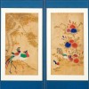 每一幅画面中,鸟与花成双成对出现,大多描绘为一公一母,象征夫妻恩爱。鸟与花相结合,寓意家道兴盛、家庭和睦。