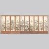 This artifact is a ten-panel folding screen by Namnong Heo Geon. It emphasizes natural scenery while minimizing depictions of cottages, bridges, pavilions, and figures. Soft washes of light color enhance the sense of seasonality and vitality. The technique of rendering distant views in pale, hazy tones and close-up views in darker, clearer strokes creates a striking sense of depth and perspective.