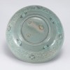 本器物为一件器形外缘呈柔和曲线的钵形青瓷。内侧镶嵌技法装饰唐草纹、如意头纹与菊花纹,表面留有以金彩装饰的痕迹。外壁则以黑白相间的象嵌描绘菊花与唐草纹。底足可见三处支烧所留下的硅石支痕。器物整体施以透明而清亮、带有冰裂纹的青绿色釉,呈现出典型高丽青瓷的釉色特色。