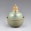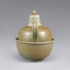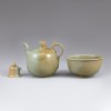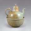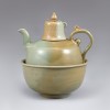 这是一组高丽时代上级阶层在斟酒或奉茶时使用的青瓷温碗与注壶组合,两件器物皆呈近似圆形,造型饱满,施以柔和的翡色釉,充分展现了高丽青瓷的美学特色。