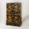 짙은 흑칠 바탕 위에 여의주를 사이에 둔 사조룡들이 시문되어 있습니다. 이러한 구상의 의미는 권위와 길상을 나타냅니다. 바탕에는 구름 문양과 다양한 길상 문양들이 빽빽하게 채워져 화려함을 더합니다. 자개와 바다거북의 껍질인 대모(玳瑁)를 활용하였으며, 당시 대모는 귀한 재료로 여겨져 상류층만이 향유한 유물임을 유추할 수 있습니다. 또한, 문짝 중앙에는 나비형 장석이 부착되어 있으며, ‘만(卍)’ 자 문양이 투각되어 있습니다.