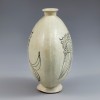 Buncheong ware, created by applying white slip over celadon, appeared during the transition from Goryeo celadon to Joseon white porcelain. The flattened bottle form was introduced in the Joseon dynasty, characterized by a body pressed flat at the front and back.