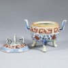 This incense burner was produced during the Xuande reign of the Ming dynasty (1426–1435). The lid is fitted with three loops and pierced with holes for the release of incense smoke. Handles are attached to either side of the vessel, and the base rests on three animal-shaped legs, forming a tripod structure. Such a form is thought to have been inspired by ritual bronzes from the Bronze Age. As a vessel for burning incense, it was mainly used in ancestral rites, court ceremonies, or in the refined living quarters of the elite. The elaborate and ornate decoration suggests that this piece was intended for use by the upper classes.