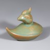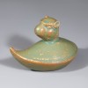 This is a set of twelve zodiac-shaped water droppers produced at the Ru kilns during the Northern Song dynasty. Each piece has a droplet-shaped body, topped with the head of one of the twelve zodiac animals. In China, figures of the twelve zodiac animals began to be made as burial objects for apotropaic (evil-averting) purposes from the Southern and Northern Dynasties period, and by the Song dynasty they were also produced in porcelain. These water droppers, with their neat, compact forms, depict the auspicious zodiac animals in a realistic manner that clearly conveys the characteristics of each creature.