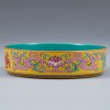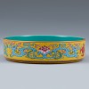 청나라 건륭제(1735~1796) 연간에 관요에서 제작된 황실용 도자기입니다. 넓은 구연부와 얕은 몸체를 가진 접시 형태입니다. 바닥면에 ‘乾隆御製(건륭어제)’ 명문이 시문되어 있습니다. 명문을 통해 건륭제의 명에 따라 황실에서 주문하여 제작되고 사용되었음을 알 수 있습니다.