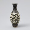 구연은 밖으로 외반한 나팔형이며, 구순은 꽃잎처럼 변형을 주었습니다. 잘록하게 내려오는 목 아래로 배가 둥글고 긴 몸통을 이룹니다. 태토 위에 백색 유약을 시유한 뒤, 흑색 안료로 채색하여 문양을 그리는 흑화 기법을 사용하였습니다. 소성 과정에서 가마 환경의 영향으로 요변 현상이 나타나 표면에 자연스러운 요철이 보입니다.