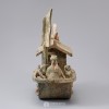 이 유물은 한나라(기원전 202년~기원후 220년) 시대에 제작된 선박 모양의 녹유 도선입니다. 배 위에는 궁궐을 상징적으로 표현한 기와집이 웅장한 모습으로 세워져 있습니다. 지붕 위에는 중국을 최초로 통일한 왕실과 국가를 수호하는 용이 하늘을 향해 용트림하고 있으며, 벽에 뚫린 세 개의 창문을 통해 남성의 세상을 바라보는 듯한 모습이 연출되어 있습니다. 창밖을 내다보는 인물상이 있는 녹유선은 매우 드문 사례입니다.