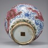청나라 건륭제(1711~1799) 때 제작된 것으로 동체 전면에는 청화로 보상화(寶相華)와 넝쿨문양을 생동감 있게 배치하였으며, 용무늬를 양각하고 붉게 채색한 청화연지홍채 용무늬 항아리입니다.