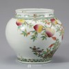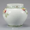 A famille-rose jar with a compressed globular body and swelling shoulder.