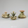 한나라 시기(BC206-AD220) 제작된 것으로 녹색 유약을 발라 구워낸 원형의 녹유삼층등잔입니다.