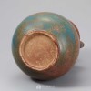 구연부와 굽이 넓고 몸통이 둥글며 목의 양쪽에 상상의 동물인 포수(鋪首)가 둥근 고리와 함께 붙어 있는 북송 균요 포수쌍이병(鋪首双耳甁)입니다.