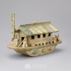 This green-glazed earthenware boat figurine looks like sailing in the ocean. Green-glazed potteries are fired after being glazed with lead.