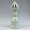 This work is a celadon ceramic in the shape of a Vajra Bell (金刚铃). The Vajra Bell is a ritual implement used in Buddhist ceremonies, intended to encourage practitioners, dispel delusions, and awaken mindfulness through its sound.