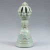 青瓷呈金刚铃状。金刚铃是佛教仪式中的法器。通过敲击铃声,为督励众生精进,驱除烦恼,用铃声警觉之。