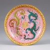 整器通体施以明亮的粉红色釉,这种色彩是雍正时期粉彩瓷器的代表颜色之一,象征温雅与高贵。盘子的色彩搭配与图案组合展现出明显的皇家风格,显示出其有可能是为皇室定制的器物。盘外底署“大清雍正年制”的款识,可知为雍正年间所制。综合其制作工艺及纹饰寓意,可推测此盘有可能为皇室或贵族的随葬品。
