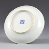 바탕은 선명한 분홍색 유약으로 채워져 있습니다. 이는 옹정제 시기 분채 도자기의 색상 중 하나로 온화함과 고귀함을 상징하는 색입니다. 이 접시의 색채와 도상 조합은 황실을 위한 도자기일 가능성을 보여줍니다. 접시의 바닥 면에는 ‘대청옹정년제(大清雍正年製)’라는 관지가 있어 옹정제 시기에 제작되었음을 알 수 있습니다. 제작 수준과 문양의 상징을 고려할 때, 이 접시는 황족이나 귀족을 위한 부장품으로 추정됩니다.