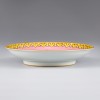 이 유물은 청 옹정 연간에 제작된 접시입니다. 이 접시에는 길상 문양인 용(龍)과 봉황(鳳)이 화려하게 묘사되어 있습니다. 용은 황제를, 봉황은 황후를 상징합니다. 이 두 존재가 함께 있는 형상은 황실의 조화, 번영, 태평성대를 의미합니다. 중심부에는 전서체(篆書體)로 황색의 ‘수(壽)’ 자가 있으며 이는 장수를 기원합니다. 주변에는 다채로운 구름 문양이 용과 봉황을 감싸고 있습니다. ‘壽’자, 용과 봉황, 구름 문양은 각각 장수, 화합, 번영을 상징합니다. 외곽의 황색 연운문(連雲紋)은 황실 도자기의 전형적인 문양입니다.