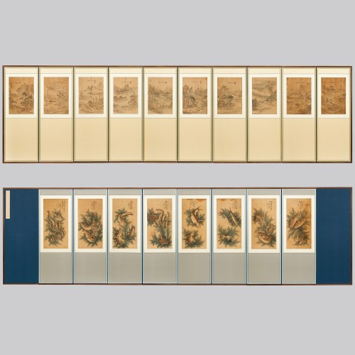 102 (앞) 소상팔경 10폭 병풍 (뒤) 어해도 8폭 병풍 조선시대 | (앞) 각 49.2×33.5 cm (뒤) 각 66.7×33 cm
