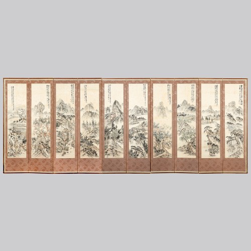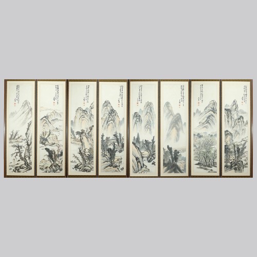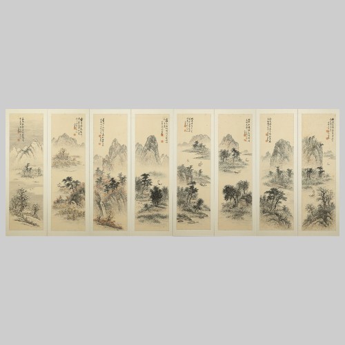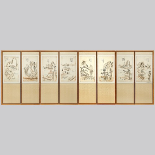 108 백련 지운영 산수화 8폭 병풍 조선시대 | 각 145×38 cm