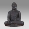 This 110cm Buddha statue has a bun on its head made of small conch-like hair. The clothes on the left shoulder form soft wrinkles, revealing the right shoulder. His right hand is pointing below to the earth and the left hand is making a sign, which is similar to Seokguram's main Buddha statue.