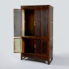 이 관복장은 문틀의 구조와 내부 판재 구성이 휨과 뒤틀림을 방지하도록 정밀하게 제작되었습니다. 상하 이단 분할 구조로 구성되어 있으며, 문판은 어두운 색감의 나뭇결이 살아 있어 전체적으로 중후한 인상을 줍니다. 문의 중심에는 금속 장석(裝飾)이 부착되어 있으며, 간결한 형태로 장식성을 절제하면서도 목재 고유의 질감과 조화를 이루는 전통 양식의 미감이 잘 드러납니다. 특히 문이 여닫이와 미닫이로 함께 사용하는 안고지기장으로 제작되었습니다. 또한, 하부 구조에는 다리가 있어 바닥의 습기를 방지하는 실용성을 확보함과 동시에 전체적인 균형미를 이루고 있습니다. 이뿐만 아닌 다리의 하단부에는 특징적인 조각이 있어 미적 요소도 보입니다.
