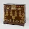 此京畿道半开箱是朝鲜时代宫廷与士大夫阶层使用的高级木家具,其特点是在正面上半部分开合。其造型高大、结构规整,搭配华丽硕大的金属饰件,是京畿道半开箱的典型特征。