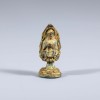 This gilt-bronze Buddha statue, a small seated figure from the Three Kingdoms period, is notable for its ornate halo and delicate craftsmanship.