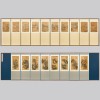 앞 폭에는 중국 후난성(湖南省) 소수(瀟水)와 상강(湘江) 일대 풍경을 주제로 한 여덟 가지 경치인 소상팔경(瀟湘八景)을 담았습니다. 밤비 내리는 모습, 안개 낀 절, 물가의 돛단배 등 자연의 변화 속 정취와 전원적 이상이 드러납니다. 오른쪽부터 두번째 폭이 동정추월(洞庭秋月), 세번째 폭이 소상야우(瀟湘夜雨), 네번째 폭이 연사모종(煙寺暮鐘), 다섯번째 폭이 산시청람(山市晴嵐), 여섯번째 폭이 어촌낙조(漁村落照), 일곱번째 폭이 원포귀범(遠浦歸帆), 여덟번째 폭이 평사낙안(平沙落雁), 아홉번째 폭이 강천모설(江天暮雪)입니다.